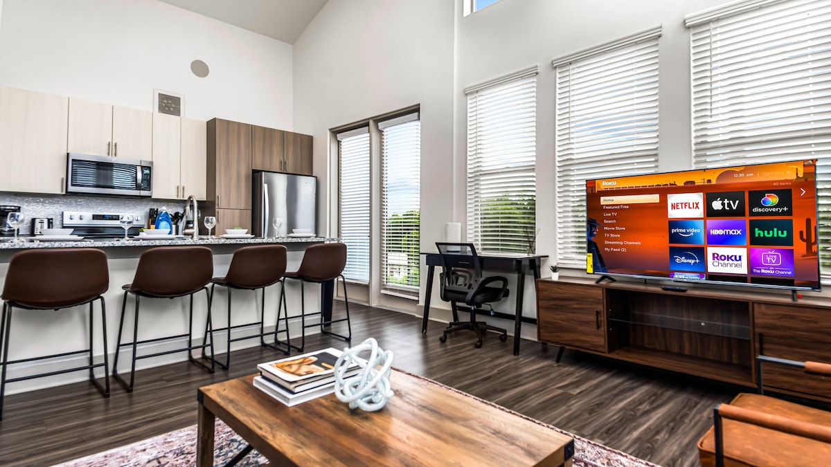 Luksuzni jednosobni stan u centru Fort Vorta Ovaj otmjeni jednosobni stan nudi savršen spoj udobnosti, stila i praktičnosti. ½ milje od TCU-a, u blizini zoološkog vrta Fort Vort, kolonijalnog kantri kluba, skladišta i centra grada. Luksuzni sadržaji: bazen, prostor za roštiljanje na otvorenom, teretana koja radi 24 sata; brzi Wi-Fi, mašina za pranje/sušenje veša, kompletna kuhinja, pametni HDTV, samostalna prijava. Besplatan parking; pametna brava za bezbjedan i jednostavan ulazak. obezbijeđene su toaletne potrepštine. Rezervišite smještaj sada i doživite nezaboravan doživljaj Fort Vorta!