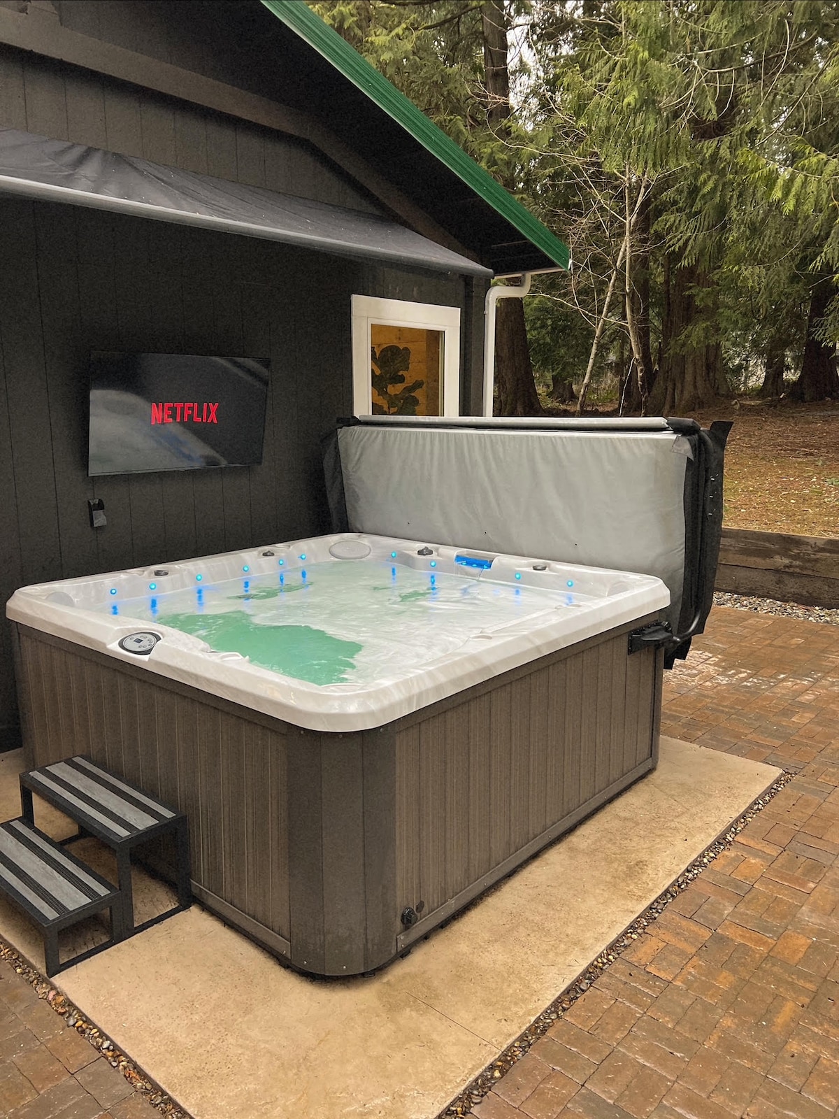 Please read the space descriptions & house rules before booking. Welcome to the Perfect Getaway Suite; a quiet, cozy, 2-br guest suite! Enjoy a spa-like, relaxing and luxurious stay with amenities including a private hot tub, fire pit and soaking tub! Unwind, relax and sip on a glass of wine in the hot tub or roast some S'mores on the deck. Rivers, farms and trails are near by. We are approx. 40 min from Seattle (no traffic). Note: This suite includes a kitchenette, no full kitchen.
