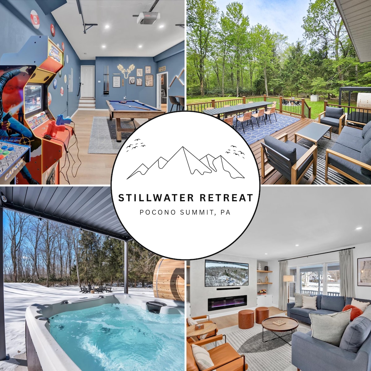 Pobjegnite u utočište mira i samoće u Moose Tracks Lodge, modernoj planinskoj kući koja graniči sa državnim parkom Tobijana. Smješteni u sigurnoj, ograđenoj zajednici, gosti uživaju u ekskluzivnom pristupu jezeru Karobet (sa plažom), bazenima i beskrajnim aktivnostima za rekreaciju na otvorenom. Osjetite dobru atmosferu u našoj oazi u dvorištu, opustite se u našoj hidromasažnoj kadi, opustite se oko našeg ognjišta i uživajte u prijatnim noćima sa porodicom i prijateljima koji roštiljaju i posmatraju zvijezde na našoj privatnoj terasi. Dobro došli kući u planine Pokono!