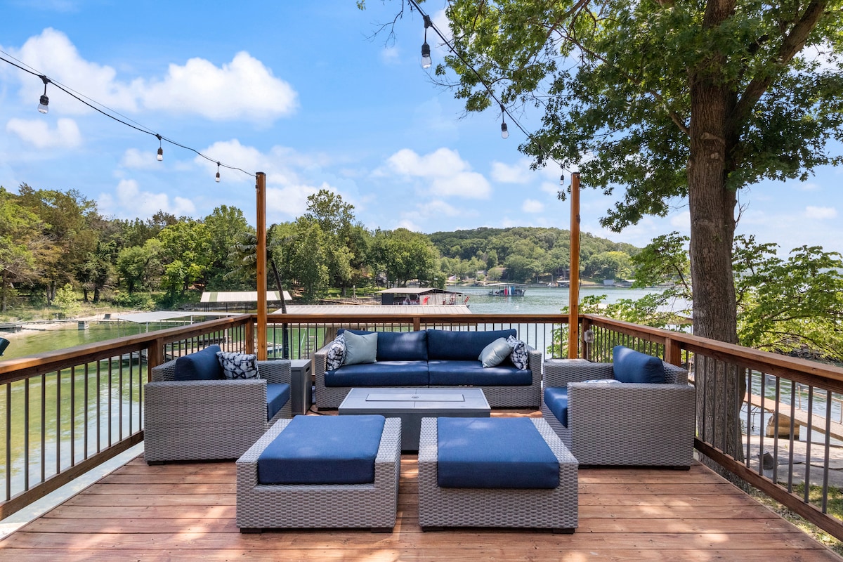 Sip your morning coffee on our screened in patio watching the sunrise on the lake in this stunning 3-bed, 2-bath on Lake of the Ozarks' only habitable island! Relax, unwind and enjoy everything the lake has to offer. Spend the day boating or jet skiing right from your doorstep. • No stairs • stocked kitchen • Across from Scooters Boat Rental – boats delivered right to you • Nearby dining spots by boat like Tap & Grill, Coconut’s, Lake Burger & Boathouse • Pool access (summer)
