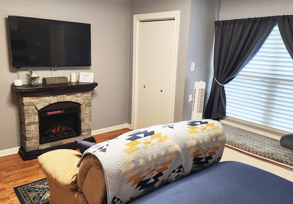 Uživajte u mirnom boravku u našem udobnom, potpuno opremljenom bungalovu dok uživate u živopisnom pejzažu iz sopstvenog privatnog đakuzija i balkona. Savršen odmor za ljubitelje prirode i one koji traže miran odmor. Nalazi se u centru grada u blizini jezera Danlap i nekoliko minuta od rijeka Komal i Gvadalupe, centra Nju Braunfelsa i istorijskog okruga Gruene. Rezervišite sada i doživite ljepotu i šarm Nju Braunfelsa kao nikada prije!