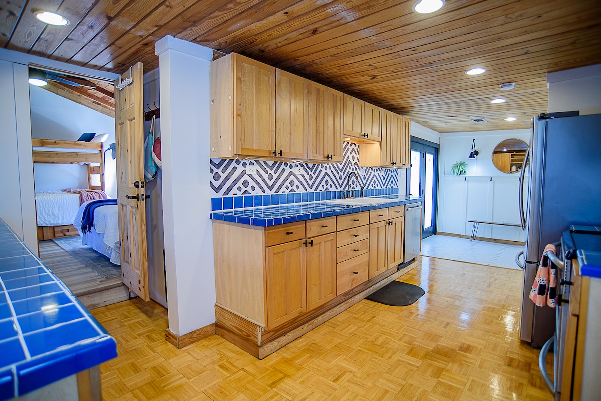 Odmaralište pored potoka – hidromasažna kada, kajaci i živopisni pogledi! Prelepi dom na obali reke Gvadalupe, savršen za porodice ili prijatelje. Uživajte u kajacima, veslanju na dasci, pecanju, roštiljanju, opuštanju uz vatru ili u visećoj ležaljci i opuštanju u hidromasažnoj kadi. Unutra se opustite uz striming, igre i kuvanje. Sa prostorom za do 10 gostiju, ovo mirno utočište je idealno za dane ispunjene avanturama ili opuštanje uz reku.