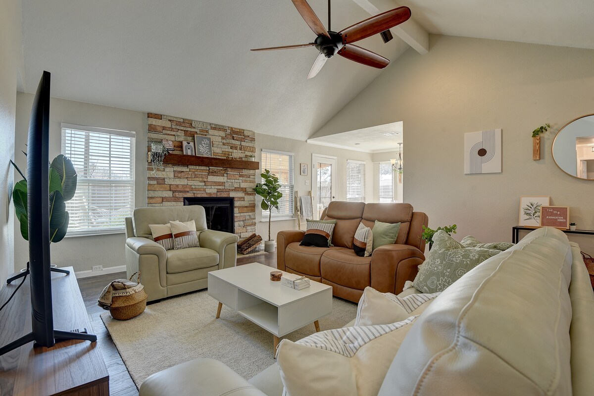 Luksuzna kuća sa 3 spavaće sobe i 2,5 kupatila na savršenoj lokaciji do jezera Rej Habard. Prošetajte do centra Rokvola za kupovinu/objedovanje i super blizu više parkova i izuzetnih restorana. Dom je u potpunosti preuređen i ima 3 spavaće sobe/2,5 kupatila sa sjajnim otvorenim tlocrtom. Garažna igraonica sa ping pongom/stonim fudbalom/kukuruznom rupom/XBOX sistemom u garaži. Zakoračite na otvorenom u svoju privatnu oazu sa privatnim bazenom, hidromasažnom kadom za 9 osoba i natkrivenim dvorištem sa natkrivenim unutrašnjim dvorištem/smartTV-om