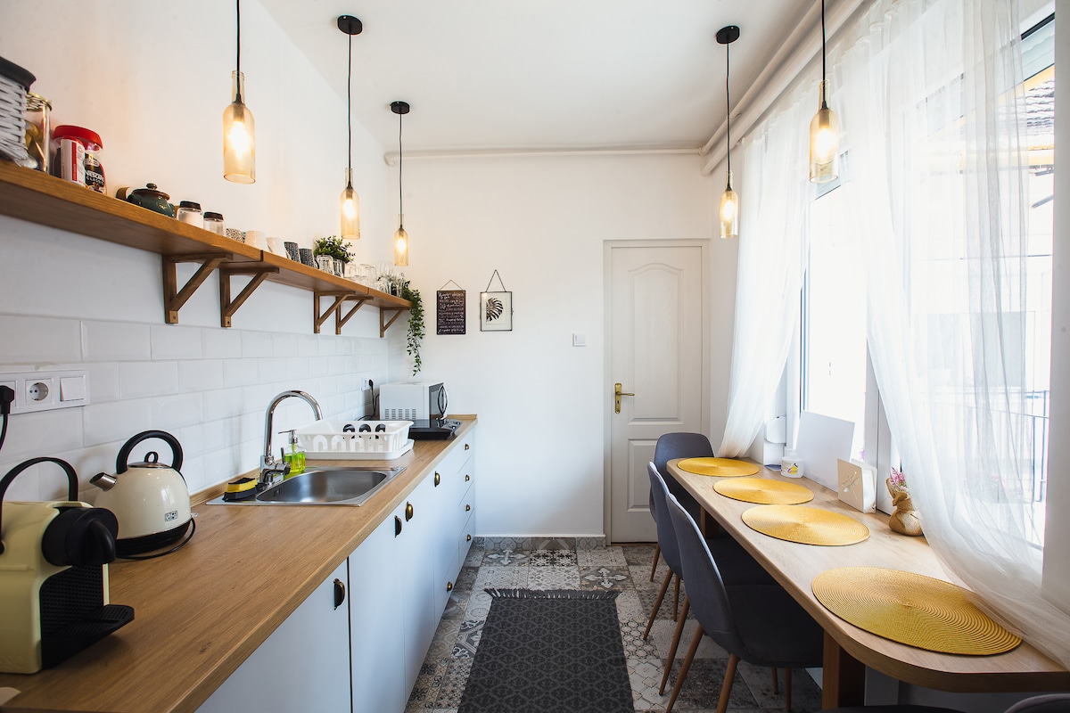 This spacious and cozy apartment is located in the heart of Eger, just a 2-minute walk from the main square and surrounded by excellent restaurants. The fully equipped kitchen is perfect for enjoying breakfast, while the sunny balcony is ideal for relaxing with afternoon drinks. The apartment offers plenty of space and a comfortable bed that ensures a great night's sleep. With its warm and inviting atmosphere, this apartment truly feels like a home, an ideal choice for your stay in Eger.
