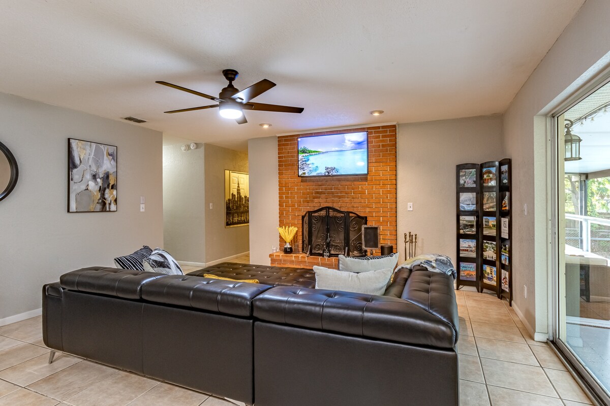 Recently renovated from top to bottom. The bedrooms have a king, queen, and bunk beds. Have a movie night with the 4k projector on the 125 inch screen and a Dolby Atmos soundbar. Cool off and away from bugs in the screened in heated/cooled pool that goes from 3 to 6 feet deep, then relax on the patio furniture. Newly landscaped spacious back yard. Quiet neighborhood so absolutely no parties. Centrally located between Tampa & Orlando. Theme parks, beaches and so much more within an hour or two.