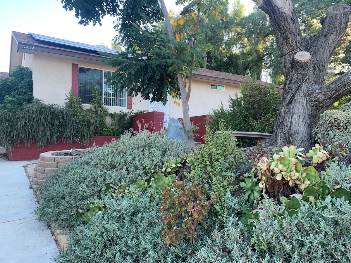 Opustite se u ovoj svijetloj i prostranoj samostojećoj jedinici s 1 spavaćom sobom i privatnim ulazom. Ova soba ima bračni krevet, kamin, kupatilo, sto i stolice, mini frižider/zamrzivač, mikrotalasnu pećnicu, ormar ,komodu, TV i prelijep pogled na planine. Plaže La Hola, centar San Dijega, zoološki vrt i Morski svet udaljeni su 25 minuta. Santee Lakes je udaljen samo nekoliko minuta vožnje i možete uživati u ribolovu, veslanju, parku za prskanje, biciklizmu i pikniku. Staze Mission Gorge su takođe udaljene samo 5 minuta.