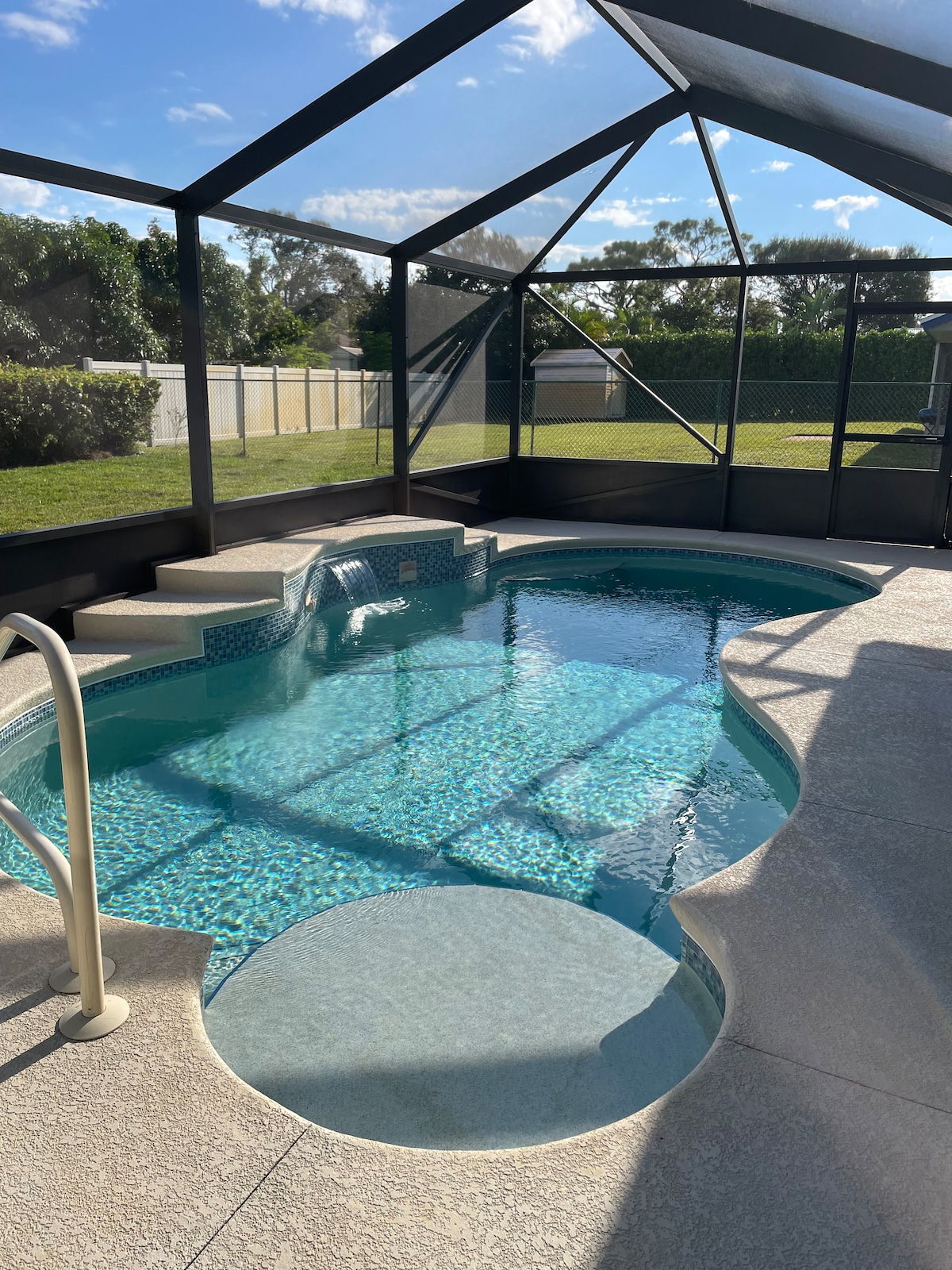 Dobro došli u Eastwood Hideaway – vaše svetlo utočište okruženo palmama u sunčanom Fort Pirs. Posebnosti ✨ Zatvoreni lanai sa svetlucavim bazenom i spa centrom Uživajte u grejanom bazenu tokom boravka – nije potrebno posebno podešavanje Trpezarija u senci, ležaljke i mnogo mesta za sedenje Dnevni boravak, trpezarija i kuhinja otvorenog koncepta za laka okupljanja