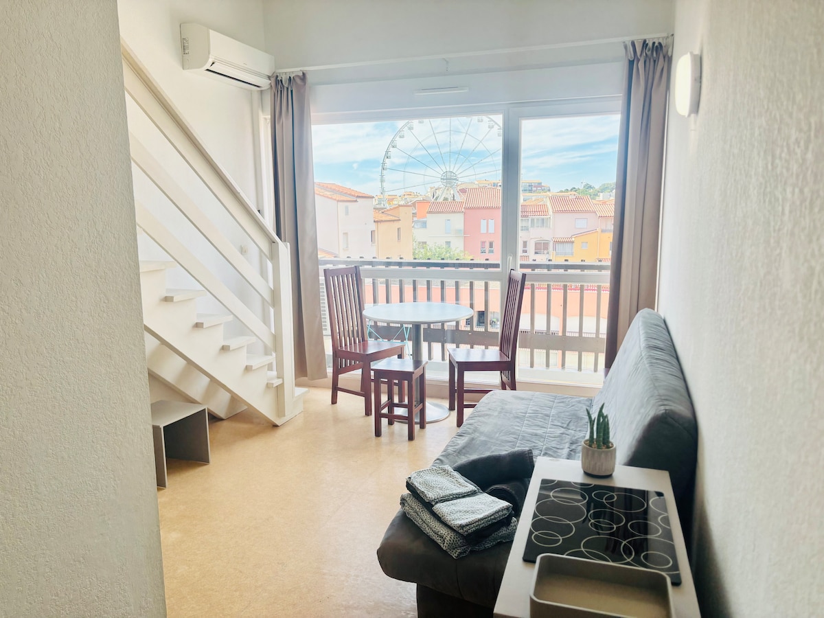Profitez d'un logement élégant et central face aux Halles de Béziers, élues "plus beau marché de France 2025". Cet appartement de deux pièces climatisé et décoré par une architecte d'intérieur se trouve au troisième étage. La chambre est au calme et le séjour dispose d' un canapé convertible et de WC séparés. De plus, rénové en 2025, cet appartement est écologique et classé A+. Ce logement n’est pas adapté aux personnes à mobilité réduite. Logement pas adapté PMR