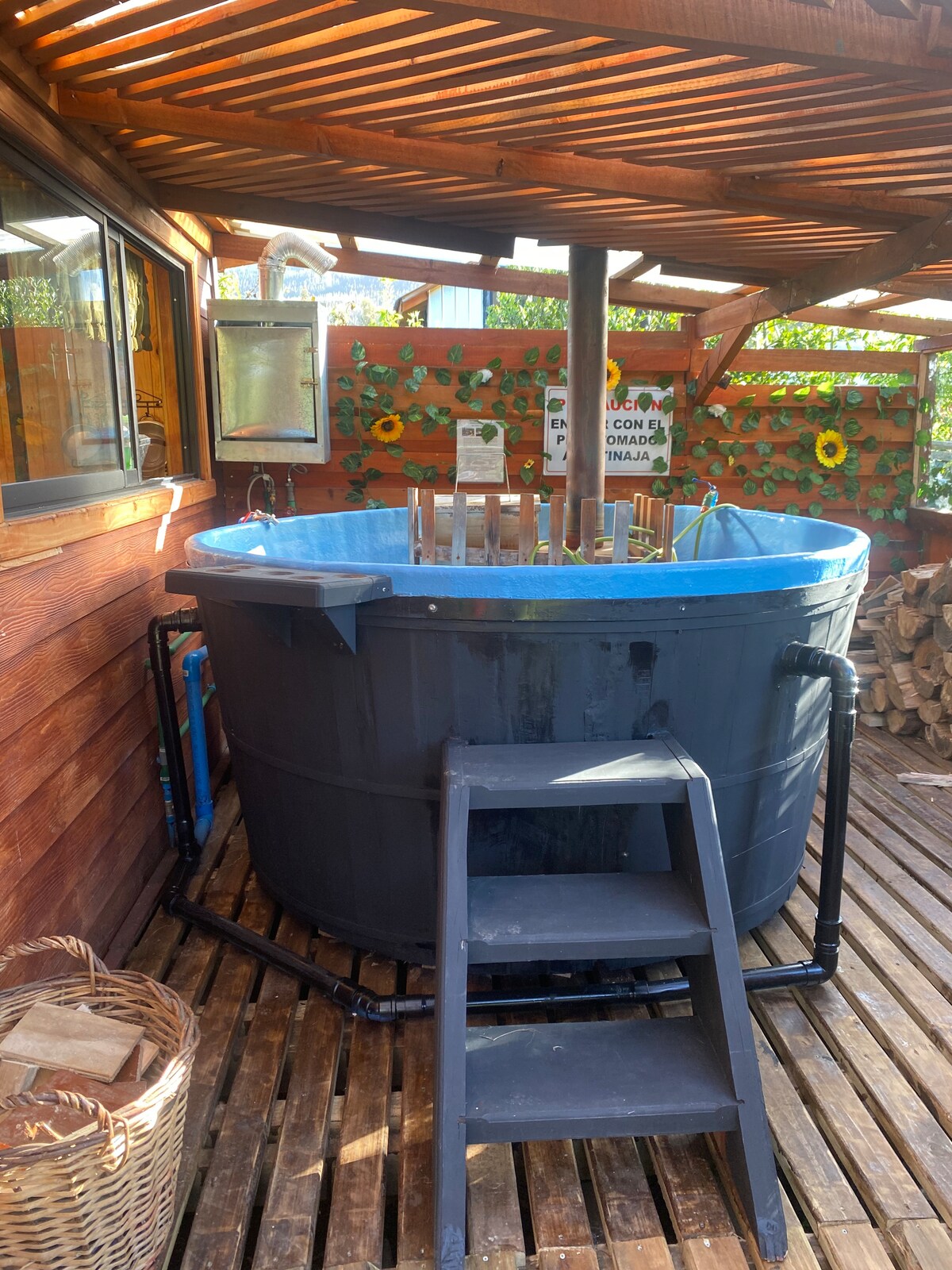 Relájate en cabañas equipadas a orillas del rio peleco, rodeadas de bosque nativo y con tinas calientes de acero en la terraza. El valor incluye uso de tinaja por el dia de ingreso.