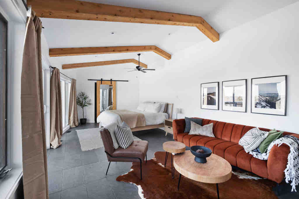 Smještena na velikoj šumovitoj parceli, Redhaus je porodična kuća izgrađena po mjeri. Izgrađen u potpunosti od drveta sa izuzetnom umijećem izrade, Redhaus nudi utočište od inače užurbanog života. Nisko zagađenje svjetlošću čini ga savršenim mjestom za gledanje noćnog neba i blizine jezera Mazinaw i Bon Echo provincijskog parka, što znači da imate mnogo toga da istražite tokom dana. Gledajte prelijepe zalaske sunca s brda na imanju, uživajte u večernjem roštilju pored kamina ili prekrivenoj sjenica kaminom na drva.
