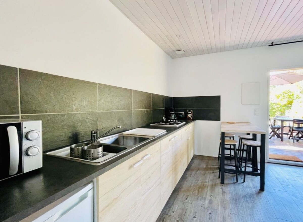 Nalazimo se u centru grada Soustons. Dakle, imate sve prodavnice u susedstvu: pekara, apoteka, restorani, doktor, bioskop, ... Naša mini kuća se nalazi u podnožju naše bašte. Reverzibilni klima-uređaj koji zagrijava zimu i omogućiće vam da se rashladite leti. Imate koristi od trpezarije sa posuđem zatvorenim verandom, dnevnim boravkom sa kaučem na razvlačenje, kupatilom, prostorom za spavanje. Velika terasa i roštilj Wi-Fi