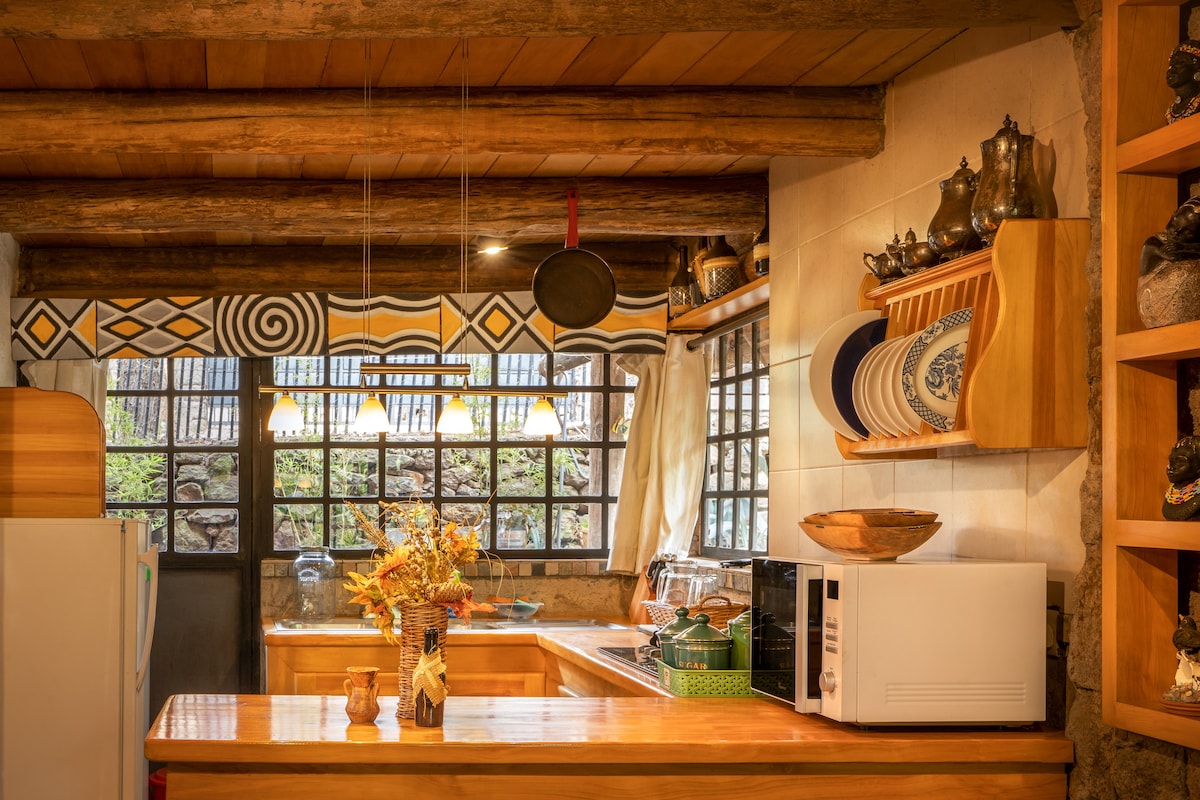 Savršeno mjesto za opuštanje za avanturiste, medene mjesece, istraživače, globalne putnike ili porodice koje žele da se drže zajedno. Ova očaravajuća mala seoska kućica ima afričku temu, rustikalan pogled iznutra, sa dvije privatne sobe od kojih dvokrevetna soba sa privatnim kupatilom ima tuš, a Superioran bračni krevet ima kadu. Dve sobe dele ulaz, salon, terasu i čajnu kuhinju sa modernim aparatima. Uživajte u čulima drvenim mirisima usred melodičnog cvrkutanja ptica svakog jutra.