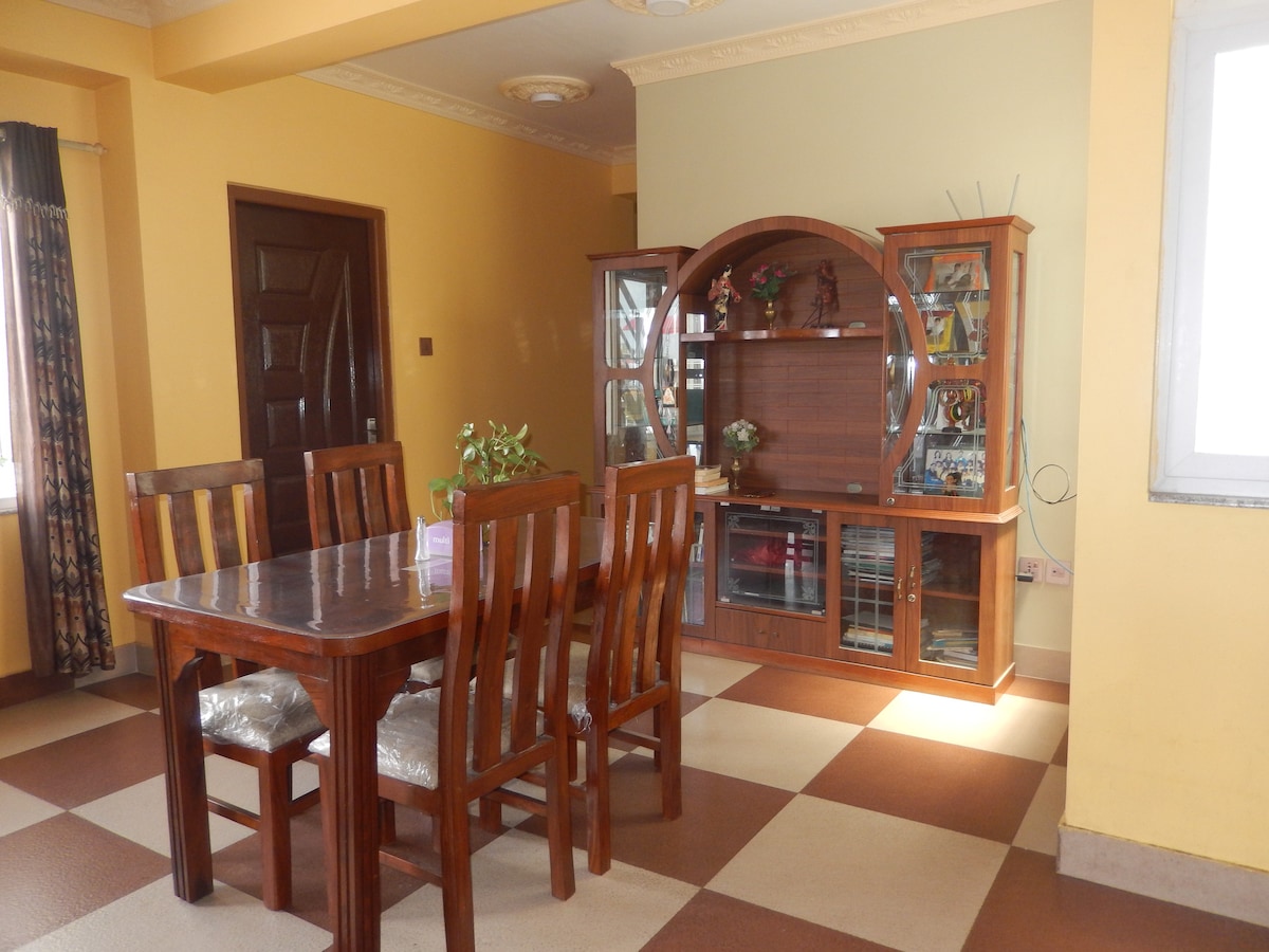 Predivan prizemni stan u porodičnoj kući na tri sprata. Elegantan enterijer, privatno unutrašnje dvorište, mala kuhinjska bašta i osamljeni zadnji trijem okružen zelenilom. Postoji mnogo unutrašnjih i spoljašnjih prostora za čitanje i opuštanje. Ekološki osviještena kuća u mirnoj i prijateljskoj četvrti u zaštićenom trosobnom kompleksu. Stan je udaljen pet minuta hoda od evropske pekare, jednog od najboljih mjesta za pekarske proizvode u Katmanduu. U blizini ima mnogo supermarketa i popularnih restorana.