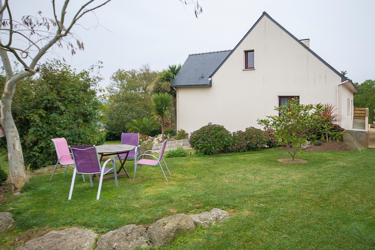 Šik, moderna kuća u seoskom stilu, u blizini sela Gulven, pogled sa vrha bašte na zalivu Goulven, obližnji restoran, more udaljeno 800 m sa stazama i dinama, pešački ribolov i vodeni sportovi u blizini. Svideće vam se moj moj smeštaj zbog udobnosti, lokacije, pogleda, bašte i mira. kuća je savršena za parove, solo putnike, poslovne putnike, porodice (sa decom), grupe i krznene prijatelje.