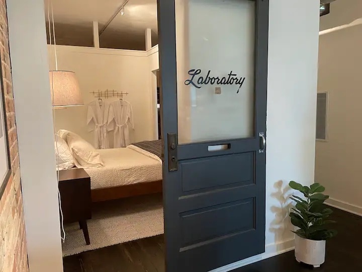 Lab Loft je elegantno potkrovlje otvorenog koncepta sa dizajnerskim enterijerom, prelepim nameštajem, udobnim kaminom, plafonima od 10 stopa, potpuno opremljenom kuhinjom, ogromnim prozorima i prostranim kupatilom. Sa plažom udaljenom samo 1 milju, to je samo 15 minuta hoda ili 5 minuta vožnje biciklom koje obezbeđujemo da biste došli do obale jezera ili oko grada! Mnogo restorana, kafića, butika i pivara nalazi se na pješačkoj udaljenosti od stana.
