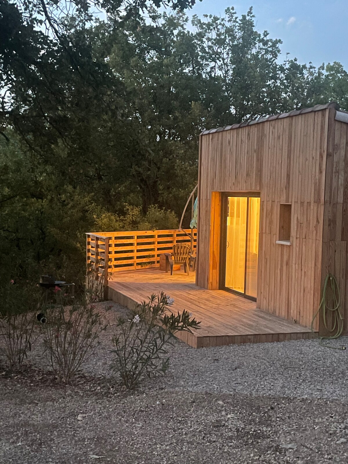 Na visinama Gangesa u srcu Cevennesa, dođite i uživajte u mirnom miru Lodge des Oliviers. Udoban drveni okvir kuće, udobna koliba će vam pružiti mir i spokoj. Maksimalni kapacitet za 2 odrasle osobe + 1 dijete/tinejdžer, (nije obavezno dodatni krevet od 15. dana) Centar sela Ganges, prodavnice, restorani, rijeka udaljena 5 minuta hoda. Direktan pristup, ćorsokak. Još uvijek sam dostupan/na na uličnom parkingu