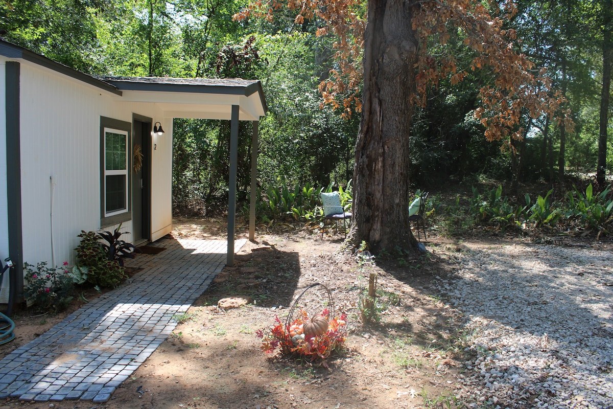 Welcome to The Bunkhouse! Its rustic space features an open floor plan with the living room, kitchen (that has everything you need), and bathroom downstairs. The beds are located upstairs in the loft. Rural small town, 15 miles from either Lake Palestine or Lake Athens, 30 miles from Tyler, TX, and an easy drive to Canton Trade Days. Only 3 miles away from TX Ziplining Adventure and an array of local wineries around!