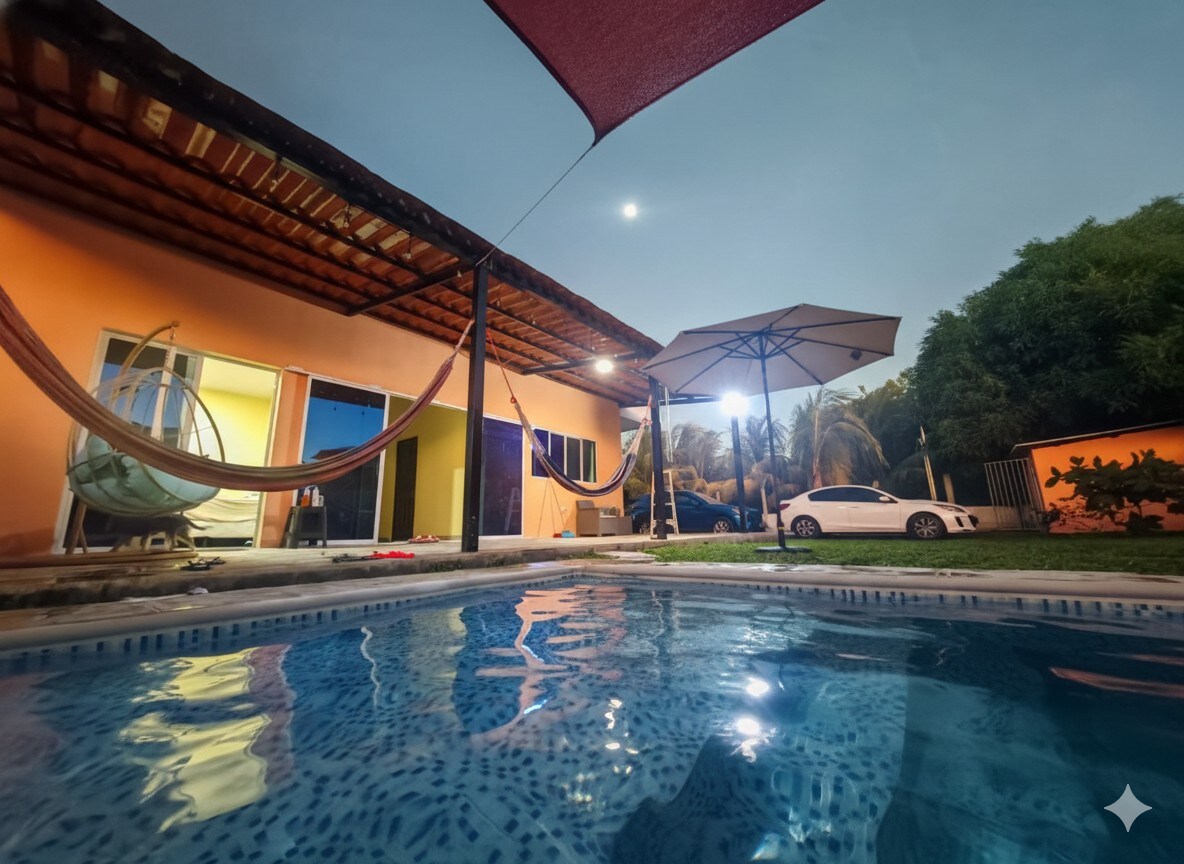 Bienvenidos a Villa Valentina🌴 Estamos ubicados en jiboa country club a 10 minutos de la playa costa del sol en vehículo - seguridad 24/7 - A 20 minutos del aeropuerto -A 45 minutos de San salvador ambiente acogedor, práctico y moderno. -Wifi , Netflix, Prime video. -Aire acondicionado en todas las habitaciones y sala. -Amplio parqueo -Piscina privada -patio -corredor con hamacas y mecedora Un lugar para relajarse, disfrutar en familia y con amigos.