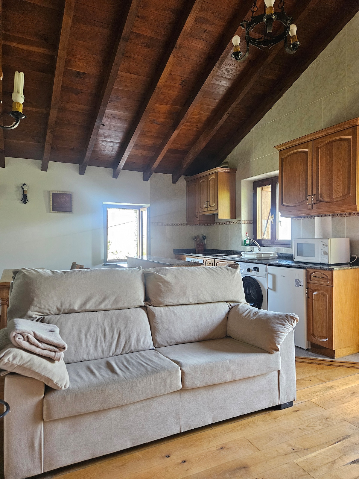 Encantador alojamiento en casa de piedra. Cocina abierta a espacioso salón comedor y zona de bar. Habitación amplia con dos camas dobles, sofá cama doble, armarios, cómodas y escritorio. Estufa de pellets, calefacción, Alexa, wifi, cinta de correr, juegos de mesa. Cocina y baño completo, secador, plancha de pelo y plancha de ropa. Cuna con ropa de cama completa, trona, bañera de bebé. Aparcamiento en la puerta. Muy tranquilo y céntrico. El pueblo tiene comercios y mercadillo los sábados.