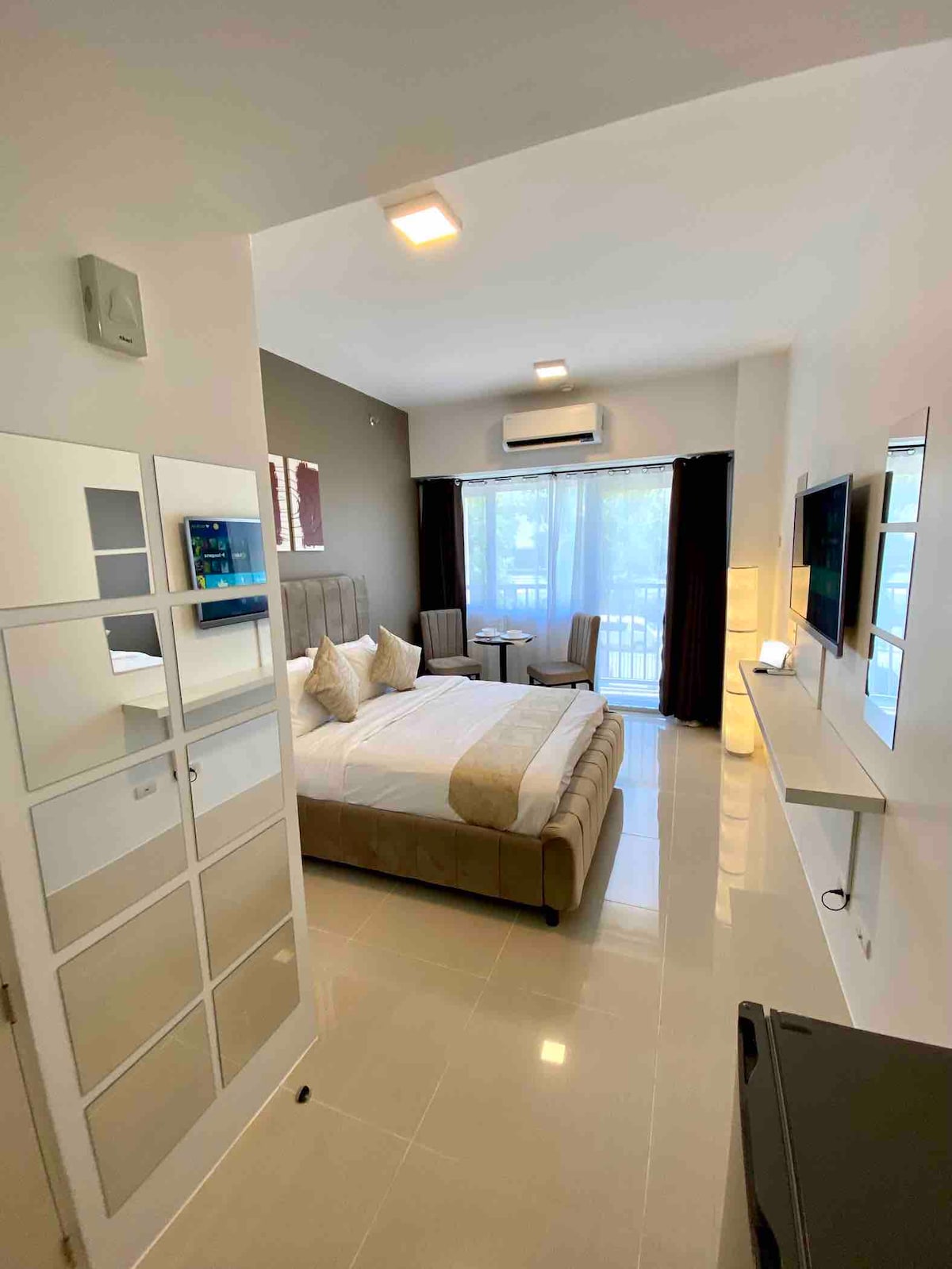 Naša jednosobna jedinica s balkonom ima bračni krevet s krevetom na izvlačenje i čajnu kuhinju u kojoj je dozvoljeno lagano kuvanje. Jedinica ima sopstveno kupatilo, 55-inčni Smart TV sa Netflix-om, Unli WI-FI i naslonjač na kojem gosti mogu udobno da gledaju! Dodali smo i Echo Show w/ Alexa (Spotify ready) Smještaj je udaljen samo 3-5 minuta hoda do SM Southmall i vrlo je pristupačan za skoro sve. Smještaj je savršen za odgovorne goste koji putuju sami ili sa svojim partnerom i djetetom.