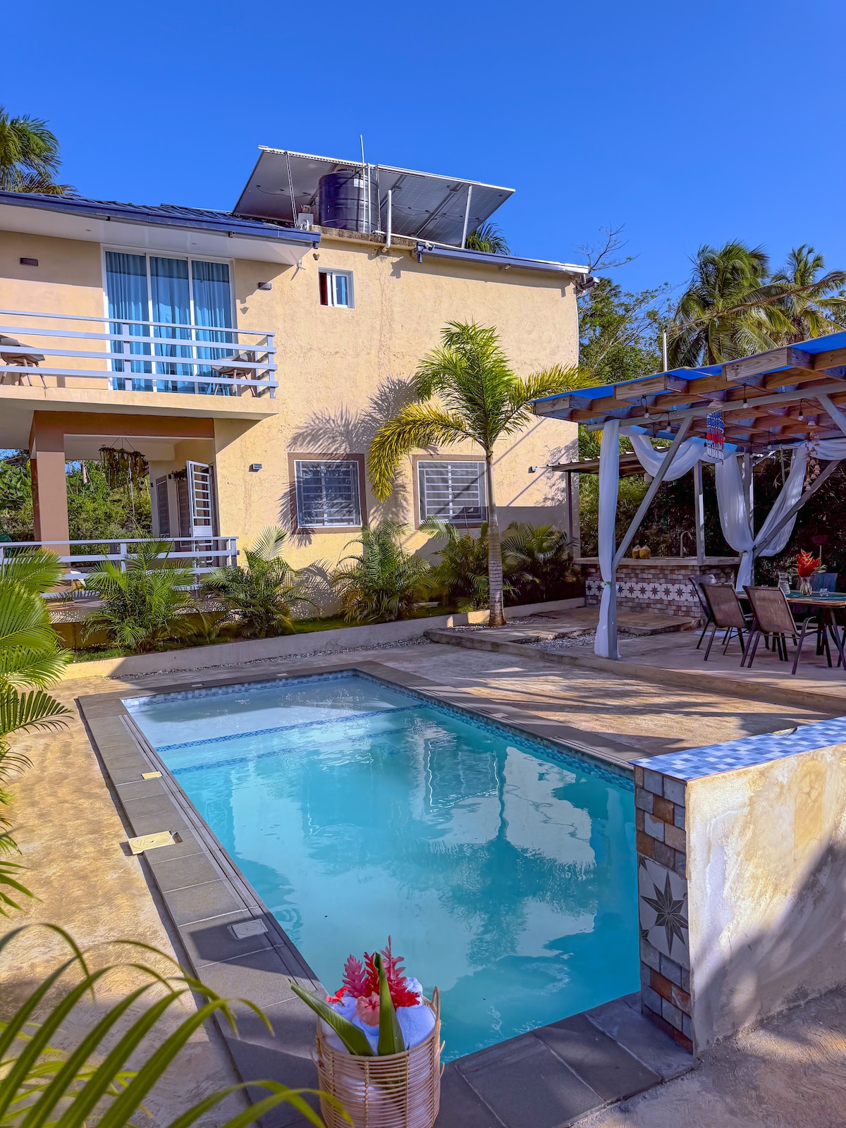 Samostalni bungalov/apartman sa svim sadržajima u tropskoj bašti vile Serenidad sa privatnom terasom, brzim Starlink Wi-Fi mrežom i u mirnom kraju, na 5 minuta od plaže Punta Popy • 1 spavaća soba s bračnim krevetom • Klima-uređaj i ventilator • Opremljena kuhinja • Privatno kupatilo sa toplom tuš-kabinom • Privatna natkrivena terasa sa ležaljkom • TV sa Netflix-om • Zajednički bazen • Besplatno privatno parkiranje Idealno za parove, solo putnike ili digitalne nomade koji traže opuštanje i privatnost u prirodi.