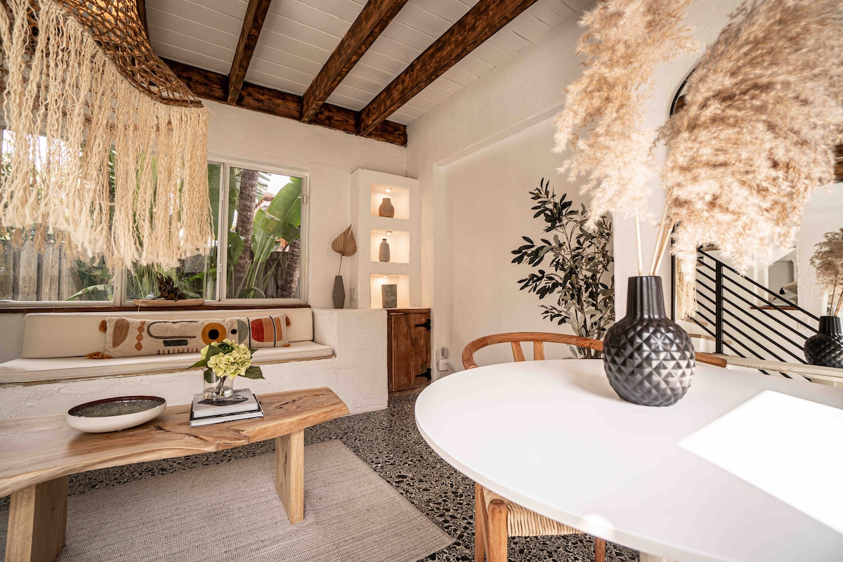 Pobjegnite u ovo mirno tropsko utočište, gdje se moderni luksuz susreće s prirodnim ljepotama. Od trenutka kada uđete, rustikalne drvene grede, prilagođeni namještaj i enterijeri obasjani suncem dočekuju vas sa toplinom i stilom. Zamislite da se opuštate u udobnom dnevnom boravku, gdje je svaki detalj osmišljen da umiri i inspiriše. Izađite u ovu oazu, bujno zajedničko dvorište sa blistavim bazenom, palmama koje se njišu i visećom ležaljkom koja vas poziva da se opustite pod suncem.