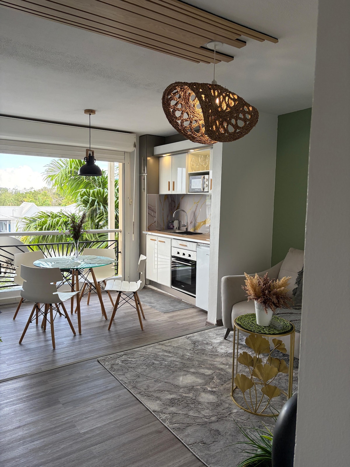 Bright and Zen studio in Le Gosier, less than1 min walk to the beach with sea view from the terrace. Idealno za parove ili goste koji putuju sami. Potpuno opremljeno: udoban krevet, kuhinja, klima-uređaj, Wi-Fi, rezervoar za vodu. Bezbjedno prebivalište, obližnji restorani i preduzeća. Savršeno za sedmicu dana opuštanja ili rada na daljinu u Gvadalupu. Super domaćin, uključeni su prilagođeni savjeti!