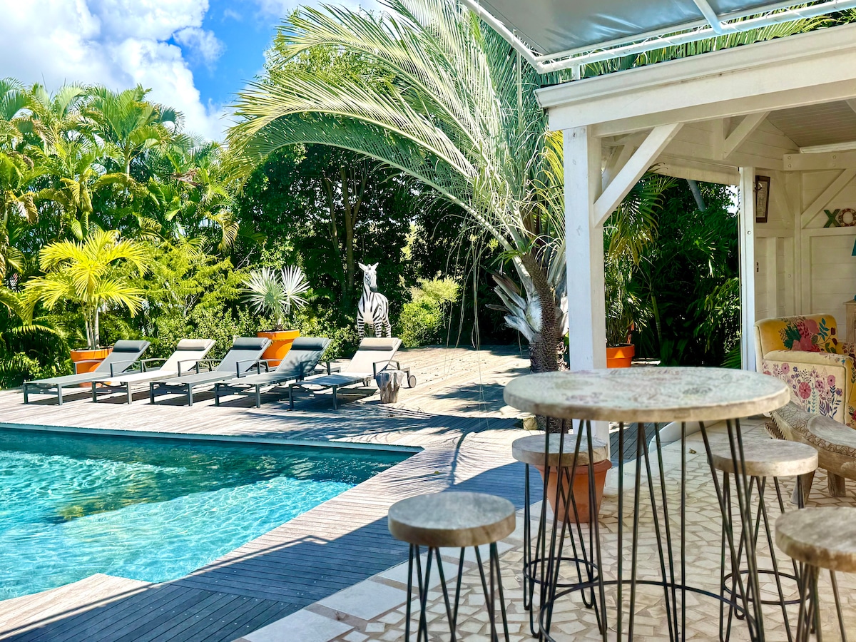 Bathed in light and naturally ventilated, our Creole villa is nestled in a quiet residential area. 10mn walk from Anse Vinaigri beach, close to the Saint-Félix coastal trail. Down the street, within walking distance, you can enjoy freshly baked baguettes pain au chocolat every morning. For your daily dose of tropical flavors, a local fruit/vegetable shop is also nearby. Our pool is open-air, occasionally, the Caribbean breeze might drop a few bougainvillea flowers onto the water's surface.
