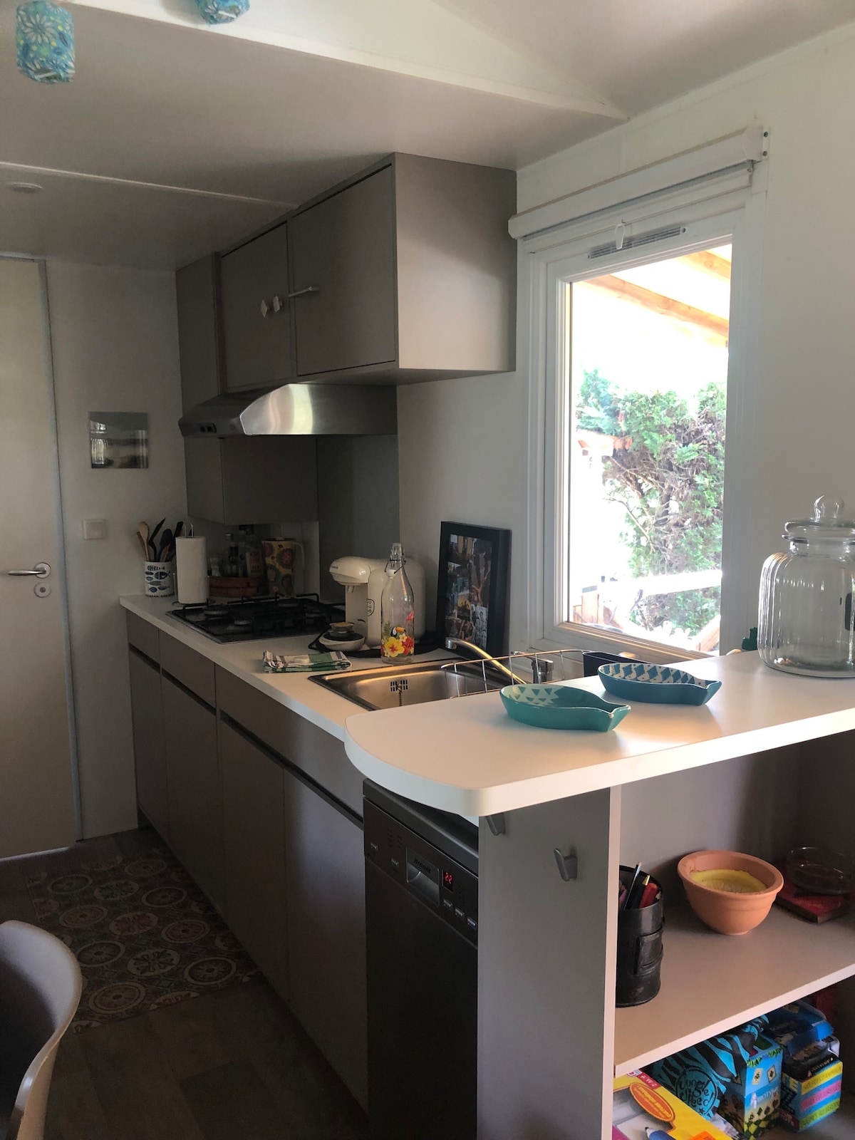40m2 KLIMATIZOVANA 🏡 MOBILNA KUĆA - 6/8 osoba u blizini ZABAVNE ZONE - Pogled na jezero - Terasa 20 m2 potpuno natkrivena - Baštenski namještaj - Ležaljke za sunčanje - Planča - Privatna parcela 100 m2🏡 ⛱ Kompleks grijane vode obložen palmama, bazenom, jacuzzijem, velikim bazenom za veslanje, 2 tobogana 🛝Petanque tereni, teniski tereni, košarkaški tereni, pikbol, mini golf, zipline, prostorija za igre (bilijar, arkadne igre...), prostor za trening s utezima na otvorenom, velnes prostor, igrališta za djecu, tobogani ...
