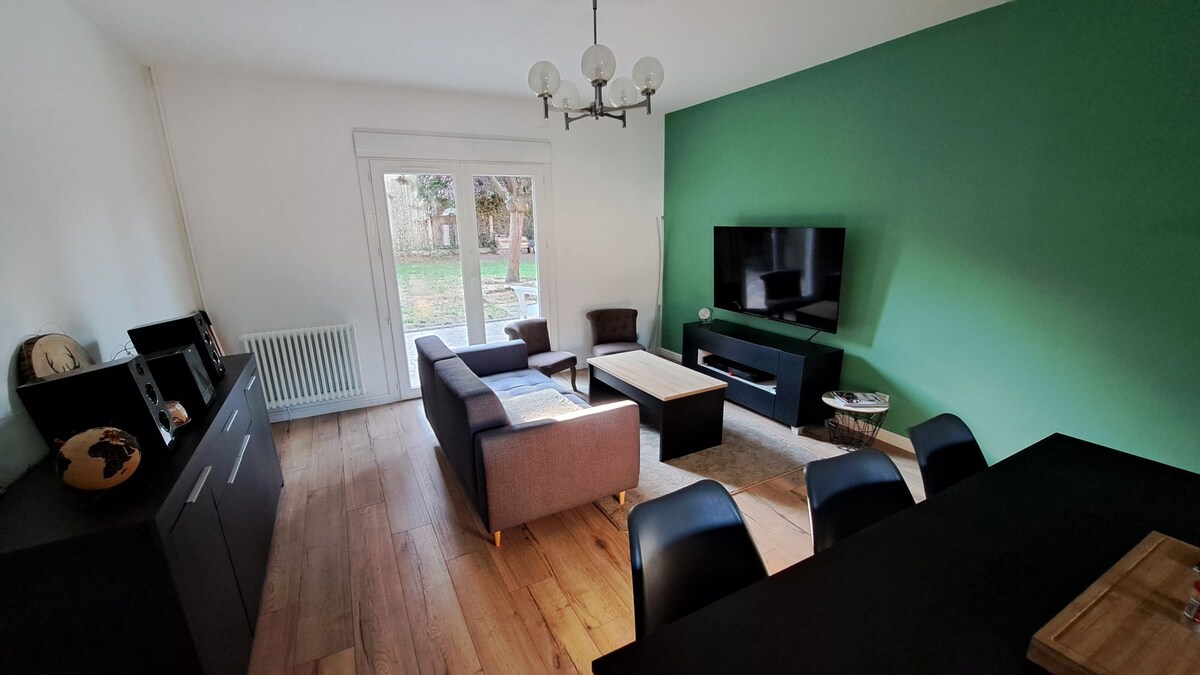 Séjournez dans un appartement élégant, confortable et parfaitement situé. À 4 min de la gare et proche du tramway, vous rejoindrez facilement le centre-ville. Le circuit des 24H du Mans est à seulement 15 minutes en voiture. L’appartement accueille jusqu’à 4 personnes : - une chambre avec lit Queen size et espace de travail - un canapé‑lit dans le salon - un vidéoprojecteur pour vos soirées cinéma Café et thé vous attendent pour un moment de détente. Un véritable cocon pour vous ressourcer.
