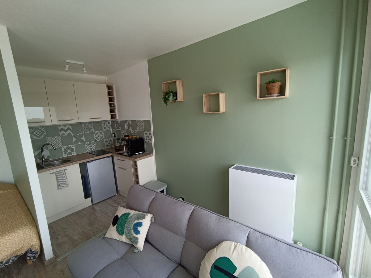 Stan. 40m2 sve Udobnost, 4 osobe -Cartonnerie 5 min ( bioskop, klizalište,kuglana, karting, restorani . - Direktni voz u Parizu . - Château Fontainebleau, Vaux le vicomte - Barbizon Novi renovirani stan: - 1 spavaća soba, krevet 160x200 + garderoba - Dnevni boravak (kauč na razvlačenje 140x190) - Namještena kuhinja - Kupatilo - Posteljina + peškiri - Parking je besplatan na ulici - TV putem APLIKACIJE MOLOTOV - Besplatan dječji suncobran na zahtev - Radni sto + Fiber internet