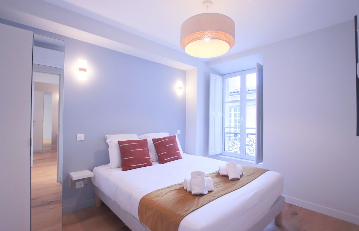 Dođite i otkrijte čari Bordoa u našem stanu u srcu istorijskog centra u toploj atmosferi. Funkcionalan i prijatan , provešćete nezaboravan boravak!! Manje od minuta hoda od Porte Kailua, 300 metara od Place de la Bourse. Ova četvrt je idealan izbor za putnike koje zanimaju ove teme: hrana, kupovina, poseta i vino. Stan i posteljina su dezinfikovani između svakog boravka .