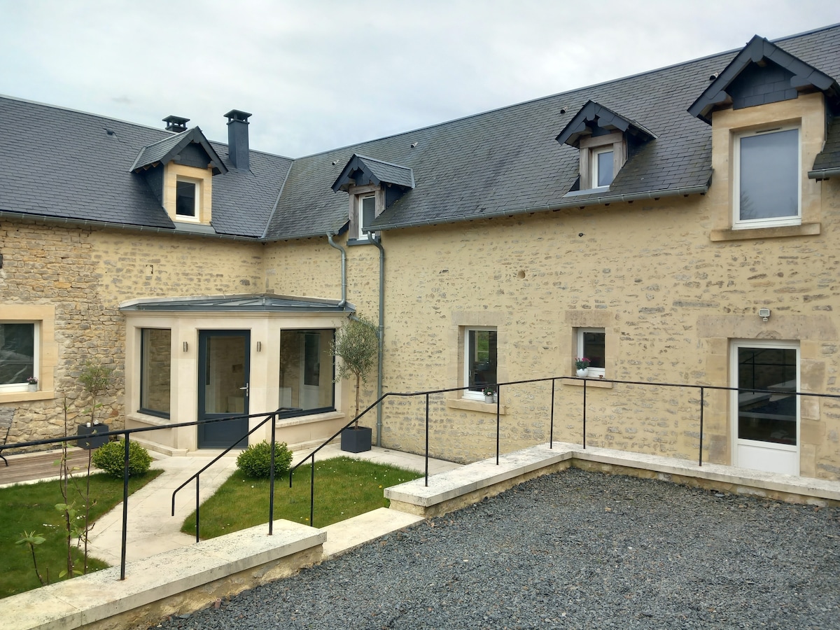 Notre logement (13 personnes max) est proche de Caen (25 mn) et de la mer dans une très belle campagne du pré-bocage en Normandie. Facile d'accès par voiture, train et aéroport. Vous apprécierez notre logement pour sa beauté, la campagne, le repos, ses chevaux (équitation possible), les massages et la piscine couverte et chauffée. Idéal pour familles de 4 à 10 personnes. La 4eme chambre est un très grand couloir, Je mets donc très souvent une chambre en plus de l'annexe pour plus de confort.