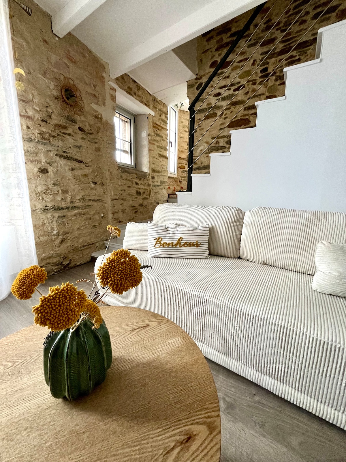 U centru slikovitog sela sa svojom crkvom iz 14. vijeka, ova prilično renovirana seoska kuća sa baštom, zavešće vas svojim šarmom i lokacijom na samo 13 minuta od Puy du Fou. Parking mesta su dostupna ispred kuće ili u blizini. Kasni dolazak je moguć sa autonomnim ulazom. Na raspolaganju smo vam i stojimo vam na raspolaganju da se vaš boravak odvija u optimalnim uslovima!