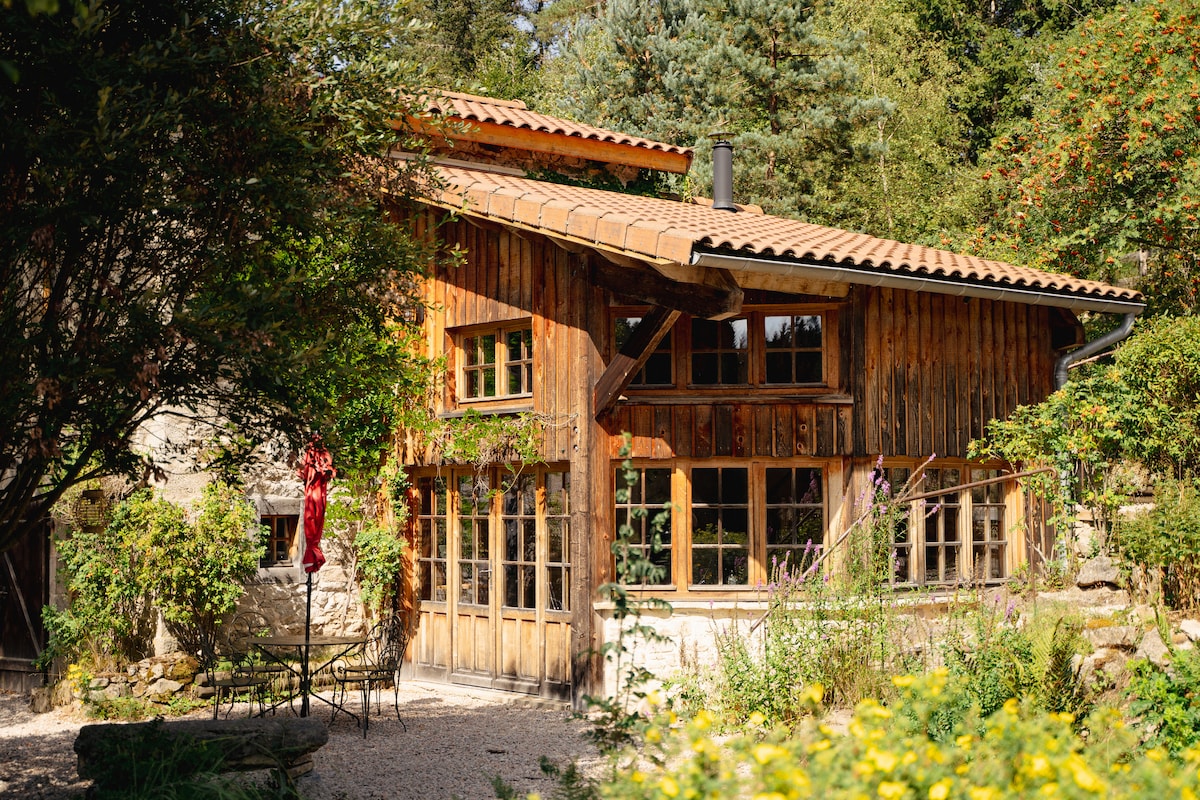 Počastite se romantičnim odmorom u renoviranoj seoskoj kući iz 18. vijeka. Udoban studio apartman s panoramskim pogledom na planine, privatnim đakuzijem i saunom, nije zanemaren. 🌹 Šampanjac, cvijeće i latice su vam na raspolaganju za uljepšavanje večeri. Udoban spoljni prostor sa roštiljem, 5 minuta od restorana i rijeke. 📍35 minuta od St-Étienne, 10 minuta od Yssingeaux, 30 minuta od Le Puy, 10 minuta od himalajskih pješačkih mostova.