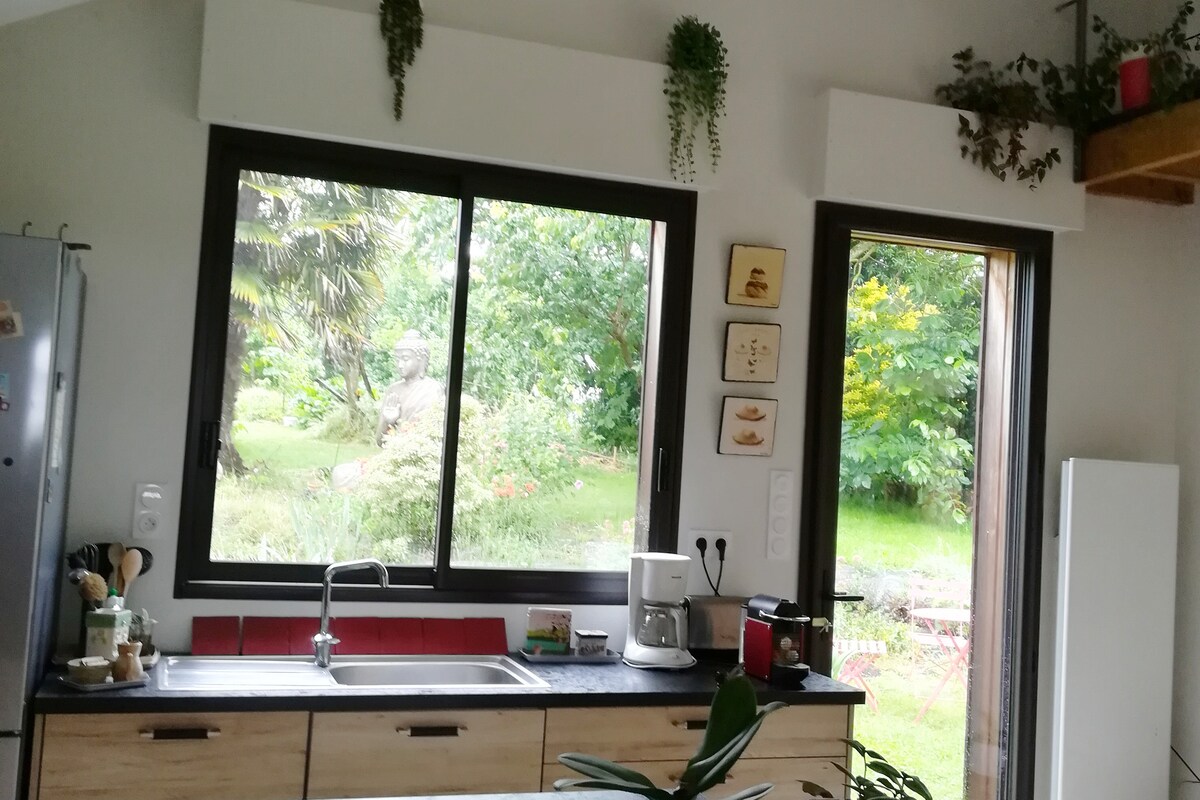 Dobro došli u našu nedavno renoviranu, tihu kuću, 10 minuta od centra grada, izložbenog parka i aerodroma! Veoma udobna, uredno uređena, u zelenoj čauri, idealna za turistički odmor ili profesionalni boravak. Može da ugosti do 4 osobe. Privatni parking. Kao produžetak naše seoske kuće, nezavisna kuća od 65 m2: 1 svetla dnevna soba, na spratu 1 spavaća soba za 2, 1 mezanin sa 1 kaučem na razvlačenje za 2 mesta, 1 tuš kabina, 1 terasa od 20 m2 i 1 bašta