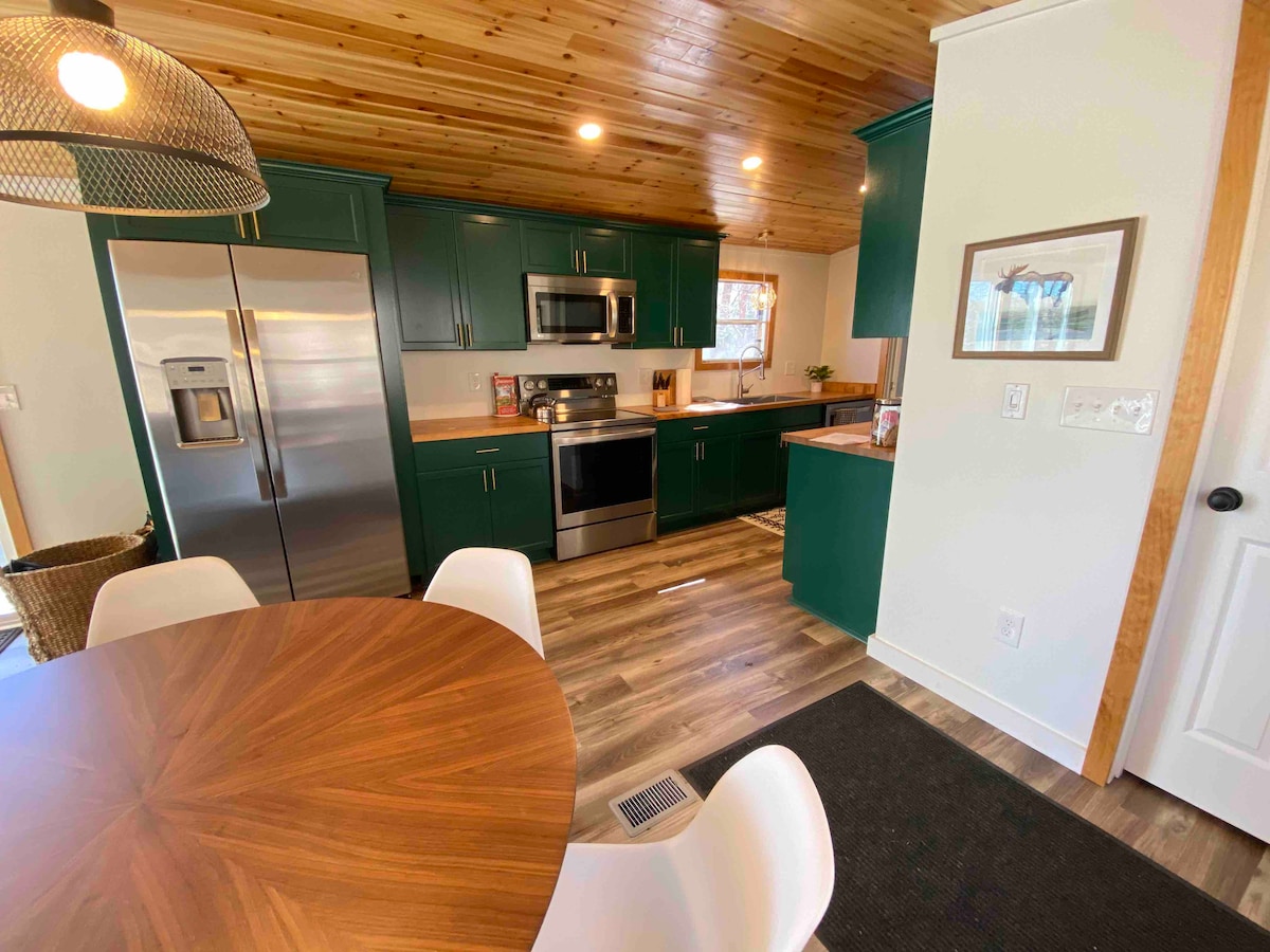 Nekoliko minuta od restorana/kupovine, ova udobna seoska kućica se nalazi ispred radne farme koza, a istovremeno održava privatni ulaz/dvorište. Prikladno za invalide, uključujući asfaltiranu vožnju, široka vrata, bez ulaza u tuš-kabinu, bez stepenica. Moderni sadržaji. 16x80 trka za pse. Skrenite na tremu, igrajte se u dvorištu, pogledajte konje u šetnji do jezera (koji se ne viđaju iz seoske kuće). Šumovita staza kojoj se može pristupiti iz jezera je udaljena 0,7 milja. Prije nego što rezervišete, pogledajte kućni red/kućni red za kućne ljubimce.