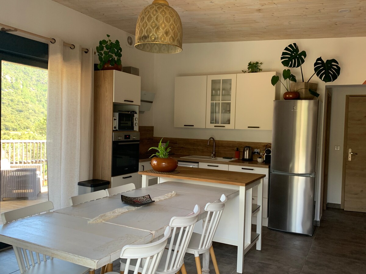 Casa Jeanata 4★: boemska šik vila sa privatnim bazenom, panoramskom terasom i predivnim pogledom na Aiguilles de Bavella. Apsolutni mir, 5 minuta od bazena Kavu i 10 minuta od plaža u Pinarelu. 3 spavaće sobe sa kupatilima. Idealno za odmor sa porodicom ili prijateljima, kombinuje udobnost, prirodu i izuzetan pogled. Penjanje na drveće, rečne aktivnosti i restorani udaljeni su 5 minuta. Plaža i vodeni sportovi udaljeni su 10 minuta. Sve prodavnice su udaljene 5 minuta.
