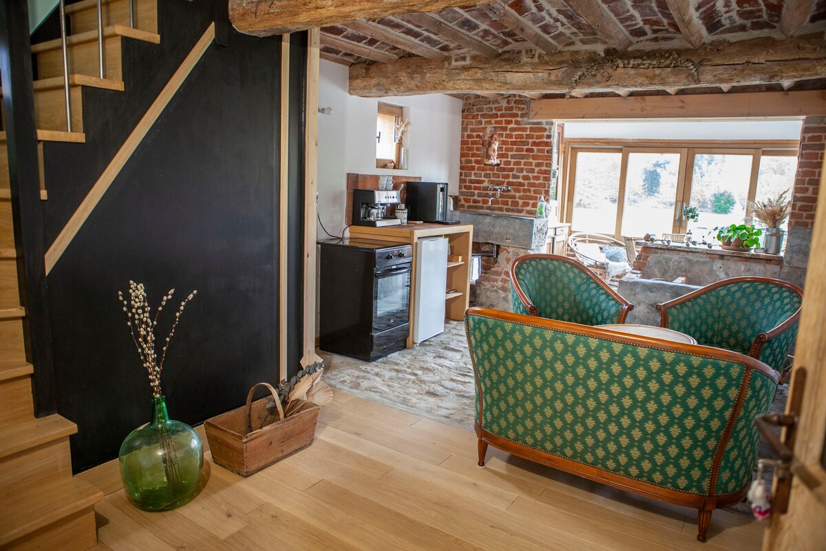 Bâtisse indépendante d une ancienne ferme entièrement rénovée dans la tradition du Nord et aménagée tout confort moderne Elle totalise une surface de 60 m2 bien éclairée par une grande baie vitrée donnant vue sur le grand jardin. Toutes les pieces sont indépendantes et ferment à clé ( hall salon chambre salle de bains cuisine et wc. La chambre est dotée d’un lit King size XL ((200 sur 200 ). Un canapé convertible grand confort assure un deuxième couchage . La cuisine est toute équipée.