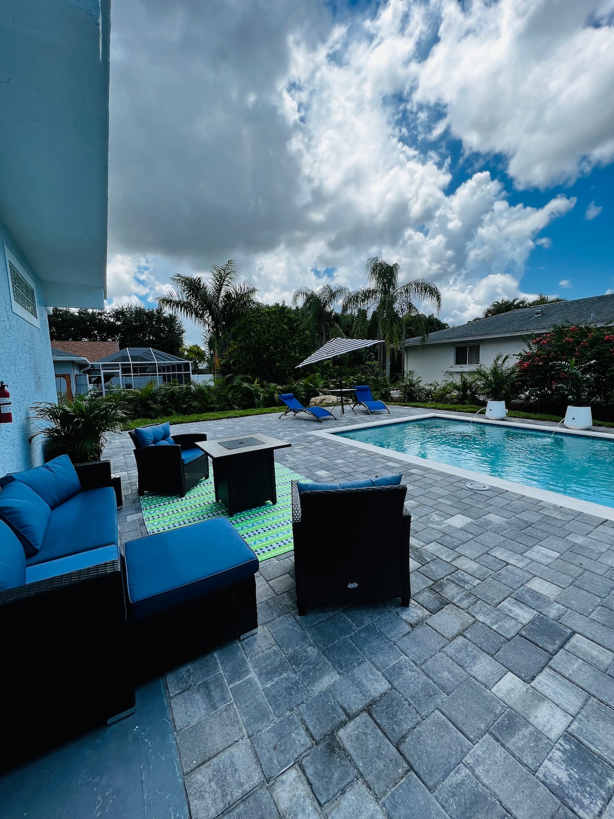 Želimo da budemo vaš domaćin u Fort Majersu! Pokazaćemo vam zašto treba da rezervišete kod nas: - 5 minuta do centra grada - 30 minuta do Fort Majers Biča - Dizajnirano za 10 gostiju (3 velika kreveta , 2 bračna kreveta (širine 150-179 cm) - Besplatan parking - Potpuno opremljena kuhinja - Privatan đakuzi - Brzi Wi-Fi - Mirno i bezbjedno područje - Privatno unutrašnje dvorište - Domaćin je dostupan non-stop - 4 pametna televizora - Porodične igre su uključene - Roštilj - Ognjište - Igralište