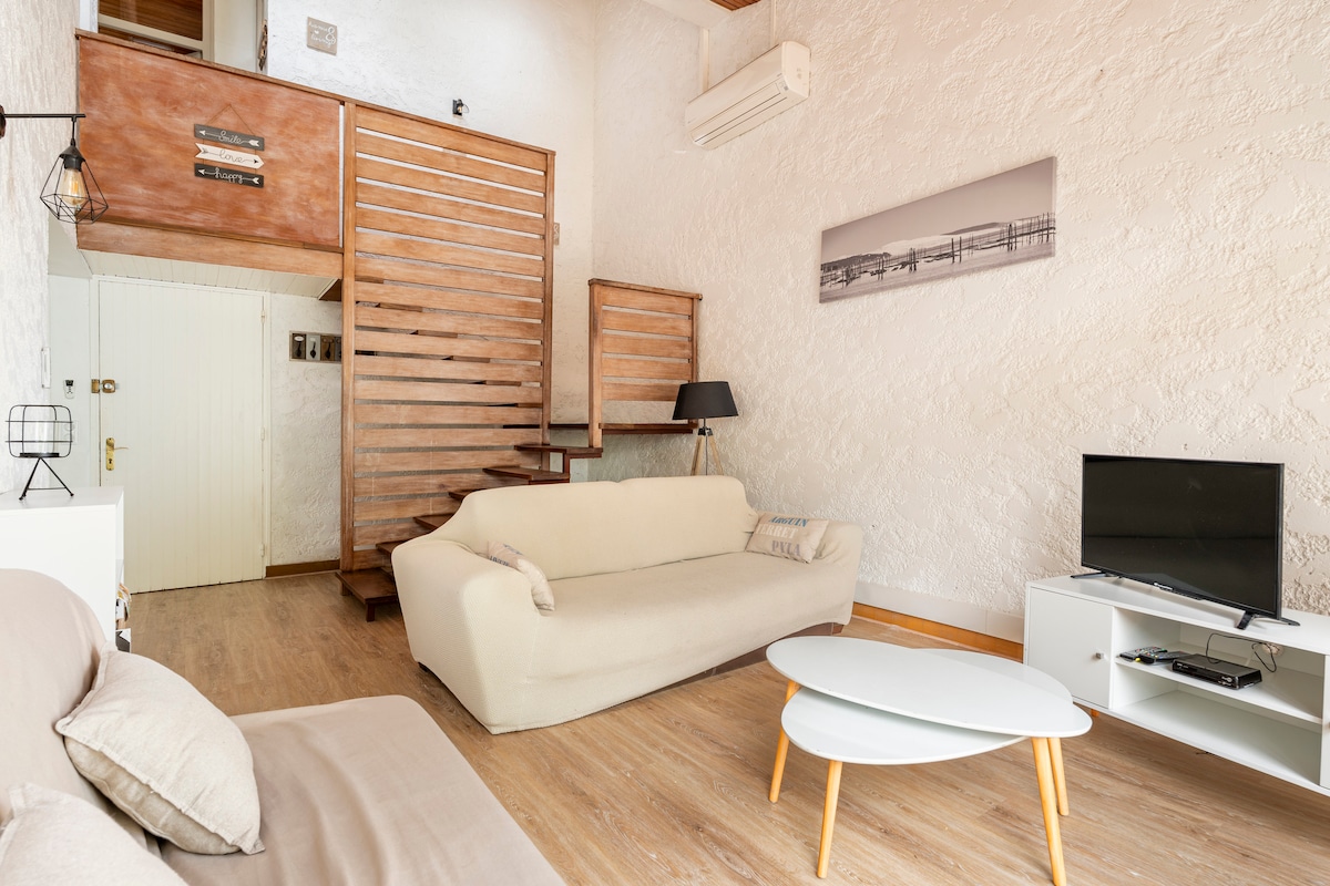 *Séjours supérieurs à 7 j: nous contacter* *Réservations du samedi au samedi l'été* Arcachon St Ferdinand, proche commerces, port, pistes cyclables... Dans rue calme, maison mitoyenne de 48m2 avec terrasse. Une chambre double en mezzanine, une chambre fermée avec lits jumeaux, pièce à vivre lumineuse, place de parking privative devant la maison, cellier. Linge de maison et ménage: forfait 65€ inclus. TV, Wifi, clim, Nespresso, four, micro-ondes, lave-linge, siège de bain bébé, transats...