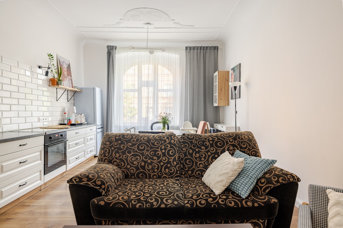 Stan se nalazi u lepom okrugu Legnica, Tarninuv, na dva koraka od centra. Stan je sveže renoviran, potpuno opremljen. 3 spavaće sobe plus dnevni boravak sa dvokrevetnim kaučem na razvlačenje. Stan u prizemlju, blizu parka, popusta na hranu i samog centra. Sveža posteljina, peškiri, komplet za pripremu kafe i čaja čekaju naše goste u stanu. TV, Wi-Fi, aparat za kafu, mašina za veš i mašina za sudove. Stan se nalazi u šarmantnom naselju Tarninov.