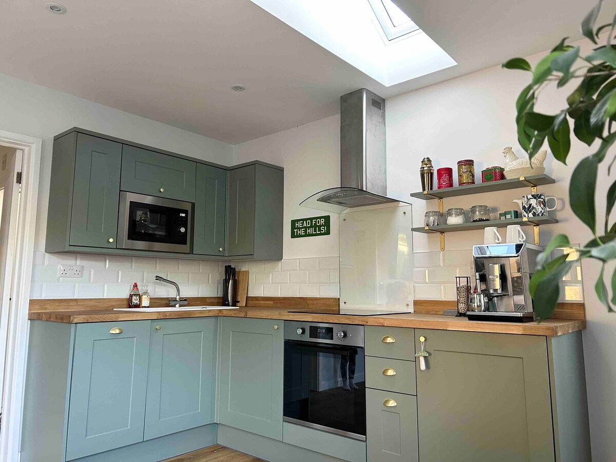 Savršen stan u prizemlju ispod naše porodične kuće, sa parkingom van ulice i sopstvenim privatnim ulazom i prostranom terasom za sunčanje. Ovo prelepo utočište nalazi se u području izuzetne prirodne lepote sa najveličanstvenim pogledom na Brecon Beacons 50 km i šire. Mirna i tiha lokacija smeštena je na strani Malvern Hilsa u samo nekoliko minuta hoda možete da dođete do neobičnog paba, prijateljskog kafića/prodavnice i mnogih pešačkih staza koje vas vode direktno na brda.