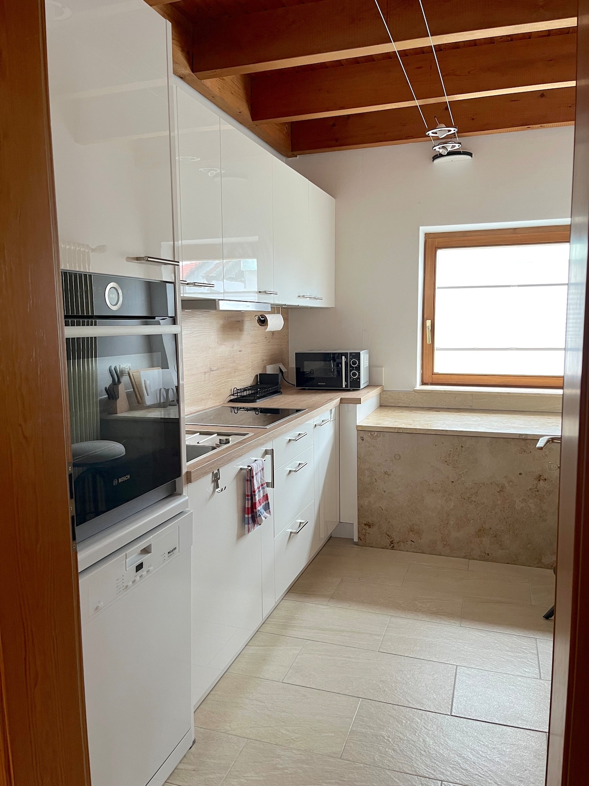 Ovaj elegantan i svijetao stan nudi vam sve za udoban boravak: udobnu spavaću sobu s pristupom balkonu, otvoreni dnevni boravak i trpezariju, radni sto za kućnu kancelariju i potpuno opremljenu kuhinju. Mirna, centralna lokacija u Rülchajmu je posebna – sa vrhunskim vezama, mnogo prirode u okolini i dodatnim sadržajima kao što su mašina za pranje veša, Wi-Fi i privatni parking. Idealno za odmor i posao!