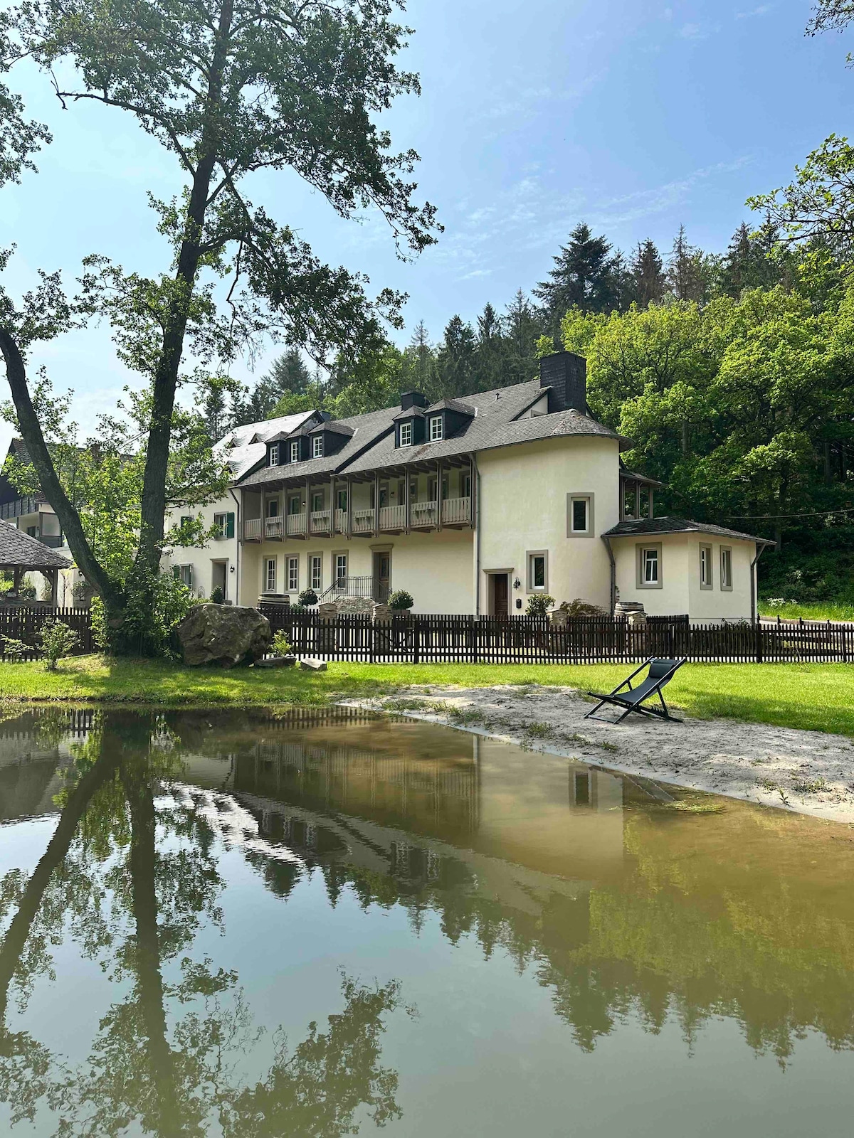Nahe der Ortschaft Bescheid, im Tal der kleinen Dhron, liegt das historische Mühlenanwesen "Alte Bäckerei". Unsere gemütlichen Wohnungen, Backhaus (10 Personen), Mehlstube (2 Personen) und Mühlenhaus (9 Personen) sowie unser großer gemeinschaftlicher Außenbereich laden zum Entspannen ein. Unser privater Naturbadesee steht unseren Gästen exklusiv zur Verfügung. Die Alte Bäckerei ist der ideale Ausgangspunkt für Wanderungen, Radtouren, Trips an die Mosel, Besuche der Städte Trier, Luxemburg, uvm.