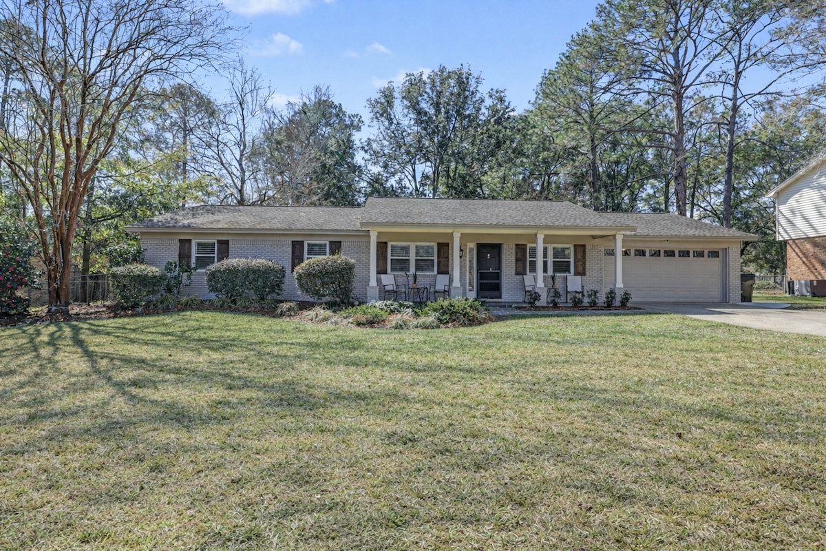 Welcome to your peaceful getaway, central to everything in Tallahassee! King bed ✔ Spacious, mural wall patio with a fenced back yard ✔ Private Parking ✔ Dogs Welcome ✔ Well-stocked kitchenette ✔ Mid-century charm ✔ Coffee, tea, snacks ✔ Cozy up with a movie in front of the custom wood slat wall, cook dinner in the kitchenette, and get a quiet night's rest under a stylish wood ceiling. You are: - 5 mins from TMH - 8 mins to downtown - 8 mins to FSU - 7 mins from I-10