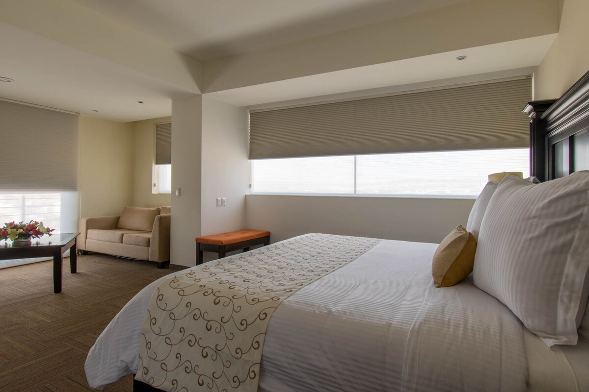 Nuestras habitaciones cuentan con acabados modernos, excelente limpieza y amenidades esenciales para una experiencia confortable. Algunas categorías incluyen jacuzzi privado, ideal para relajación y momentos especiales. El hotel ofrece wifi rápido, TV con plataformas, ropa de cama de calidad, check-in ágil y ubicación estratégica cerca de zonas comerciales, avenidas principales y puntos de interés de la ciudad.