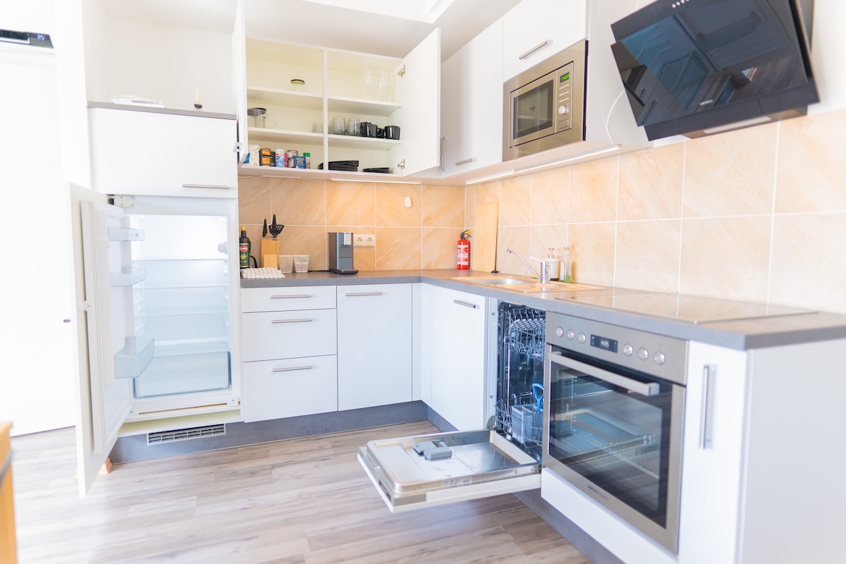 Moj savršeno smešten (samo 10 min. hoda do 1. okruga) 72 m ² (= 720 m2) moderan stan je veoma sunčan sa ogromnim vratima terase i prelepo namešten. Sve je lako dostupno javnim prevozom; U1 (podzemna željeznica) je udaljena samo 2 minuta. Imate pun pristup celom stanu, uključujući mašinu za sudove, mašinu za pranje veša, Wi-Fi i pribor za kuvanje Ulazna dvorana, otvorena kuhinja (NESPRESSO APARAT), trpezarija/dnevni boravak, spavaća soba, kupatilo, zaseban toalet + besplatan parking