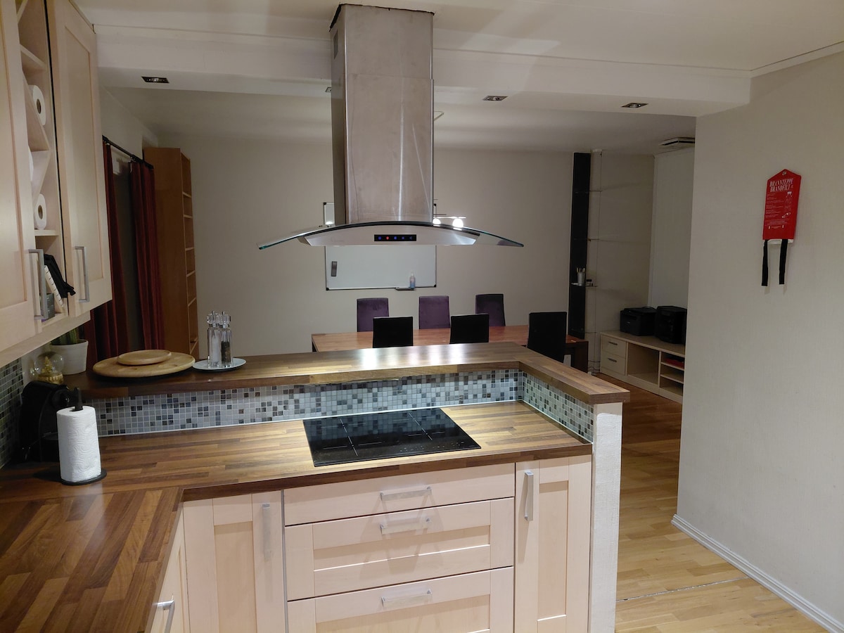Ovo je lijep, veliki, miran stan u blizini fudbalskog stadiona Lerkendal. To je posljednja stanica aerodromskog ekspresnog autobusa. NTNU i bolnica St. Olav su u blizini. U blizini se nalaze razne prodavnice, a do centra grada ima 30 minuta hoda. Stan ima otvorenu kuhinju/dnevni boravak, jedno kupatilo sa tušem i prostoriju za pranje veša sa dodatnim WC šoljom. Prepun je svega što vam je potrebno. Profesionalno je očišćen i prikladan za porodice. Može da primi 3 para + 1 osobu.