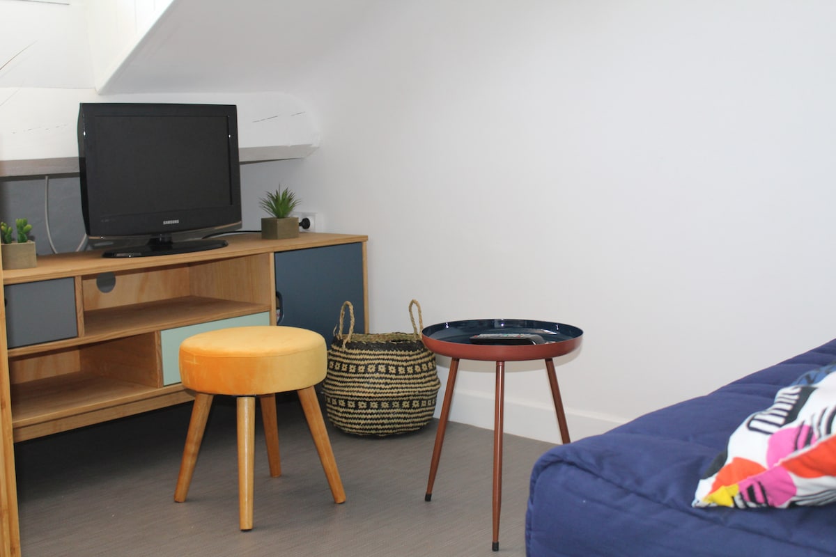 Šarmantni udobni studio sa prelepim panoramskim pogledom na Pirineje, Životni stil pešice. Idealno je da se nalazi nekoliko koraka od plaže, istorijskog srca, pešačkih ulica i pijace. Idealno za parove sa 1 detetom Pravi krevet i vrlo udoban kabriolet.